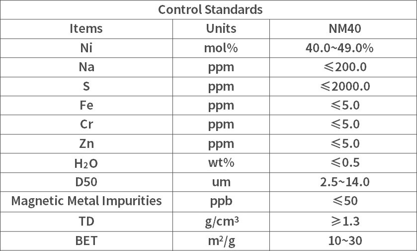 富锰产品,黑色粉末,镍含量为40%~49%,在高电压、高能量密度方面有显著优势。