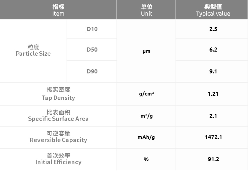 采用预锂化制备的硅氧材料,具有高首效、低膨胀和长循环的优势。
